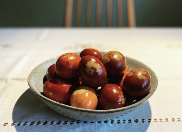 Sla dit jaar de chemische verfbadjes over en ga voor een 100% natuurlijke paastafel. Met ingrediënten die je waarschijnlijk al in je keukenkastje hebt staan (of uit de gft-bak kunt redden), tover je eieren om tot kleine kunstwerkjes. Door gebruik te maken van blaadjes uit de tuin en een oude panty, creëer je prachtige botanische afdrukken.
